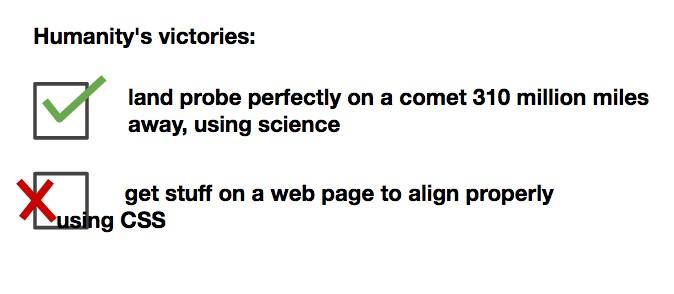 Yes it's easy to land on comet than to properly align stuff on web using CSS.